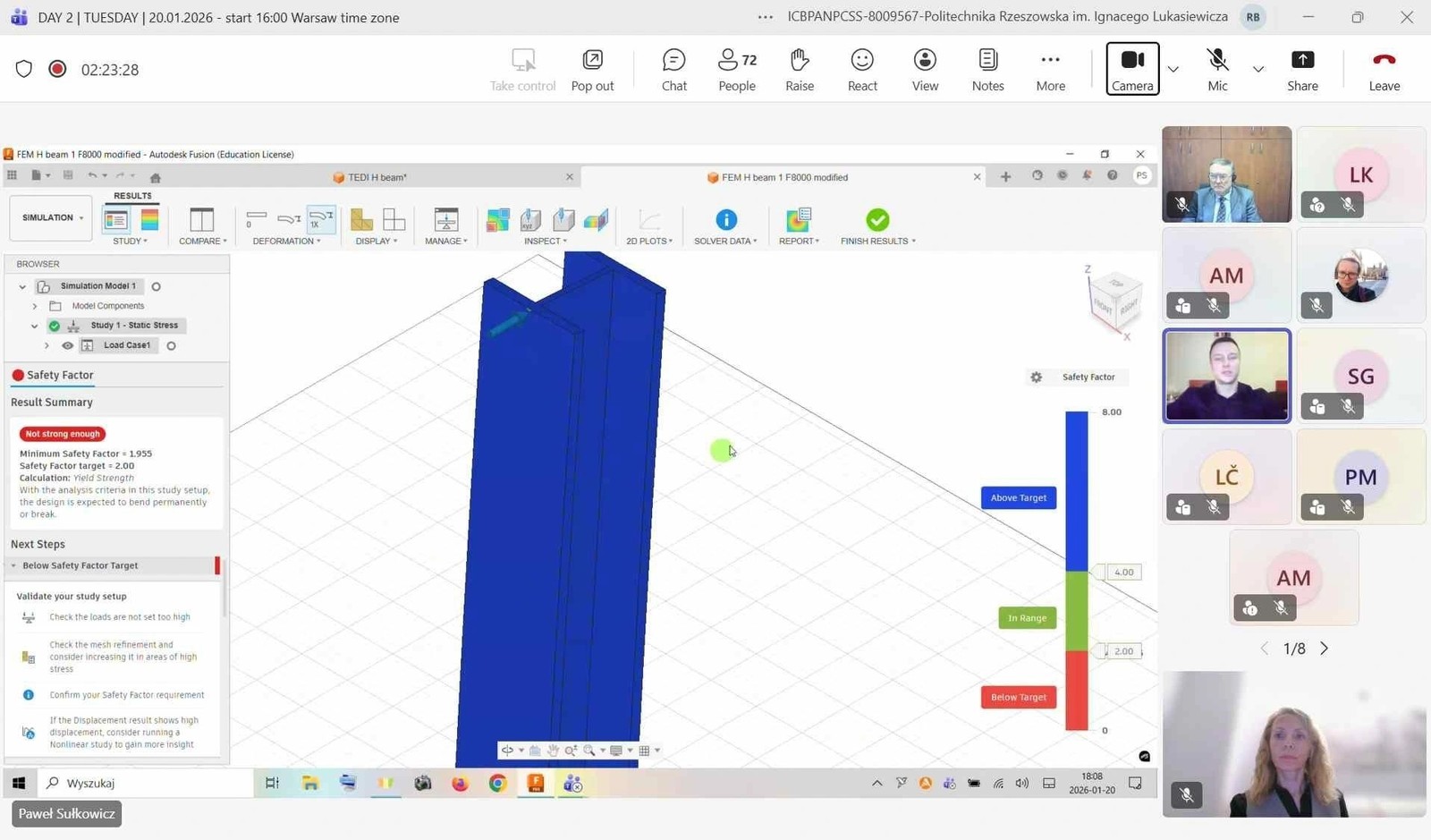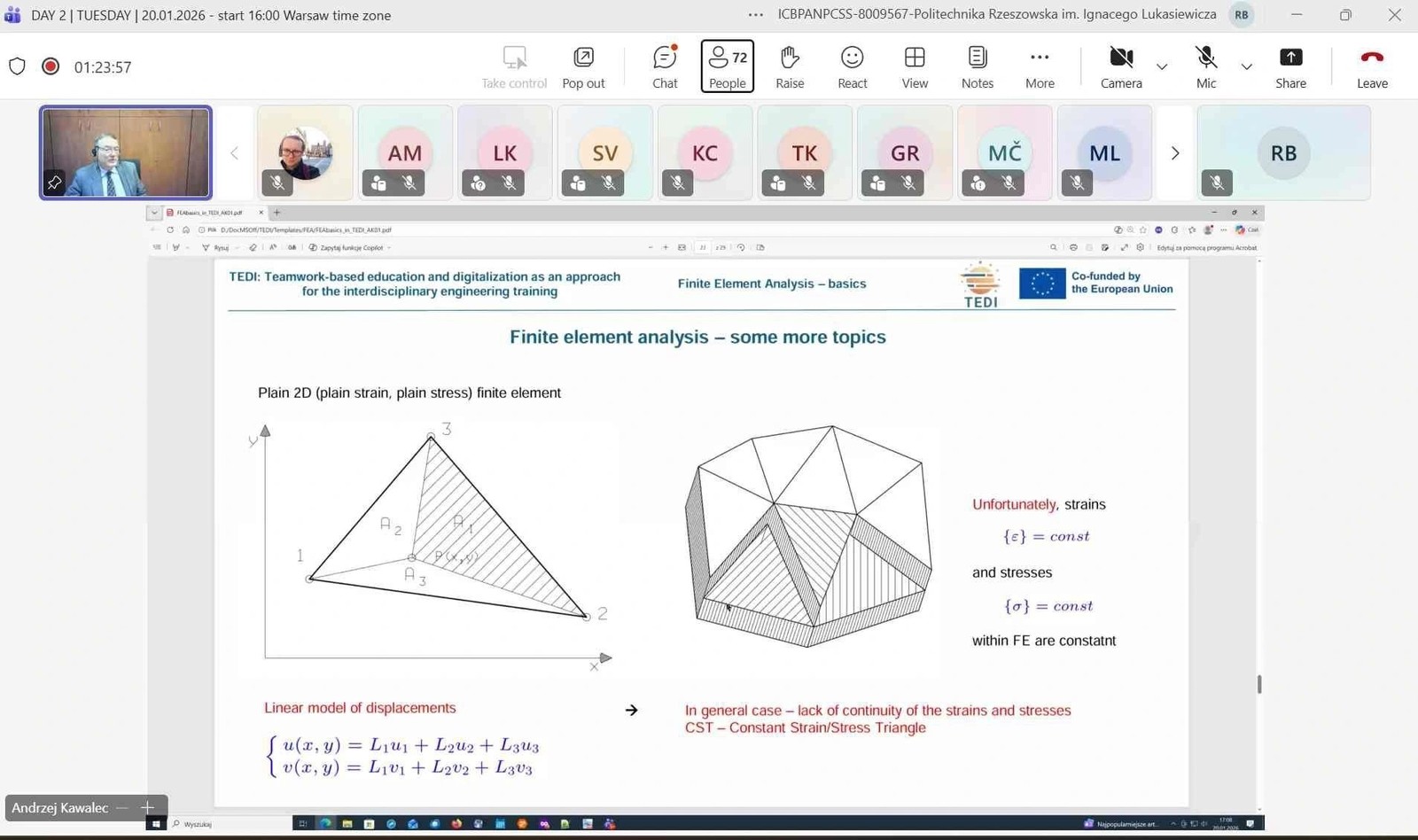 The 2nd TEDI training continues. Today, prof. Andrzej Kawalec and dr Paweł Sułkowicz from Rzeszów University of Technology presented key issues regarding the Finite Element Method (FEM).